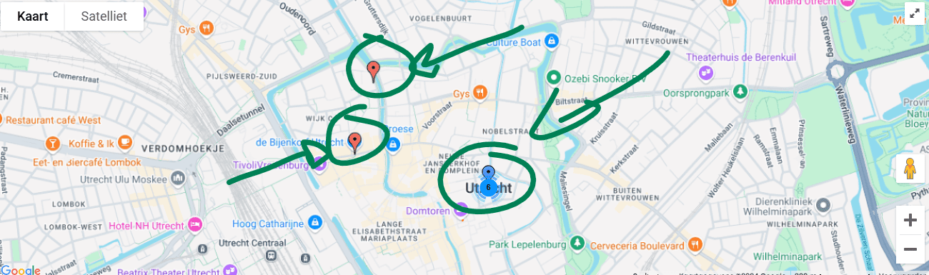 Kijk maar – als je zoekt in hartje Utrecht dan springen er 2 duidelijk bovenuit, en zijn er nog 6 makkelijk te optimaliseren: